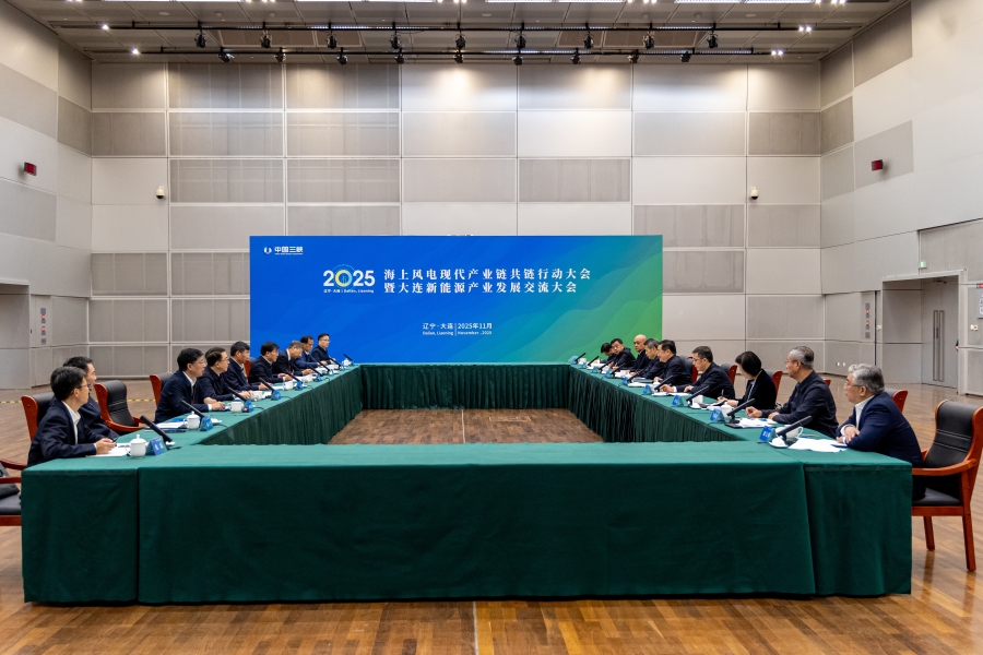 本网讯(雷海超)11月8日,2025海上风电现代产业链共链行动大会暨大连新能源产业发展交流大会期间,三峡集团董事长、党组书记刘伟平,总经理、党组副书记李富民在大连市与辽宁省委副书记、省长王新伟座谈,双方就贯彻落实党的二十届四中全会精神,进一步深化战略合作进行深入交流。辽宁省委副书记、大连市委书记熊茂平,省政府秘书长、办公厅主任冯守权;三峡集团副总经理、党组成员王昕伟出席座谈。