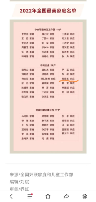 喜报:上海院陈能玉家庭荣获2022年全国最美家庭