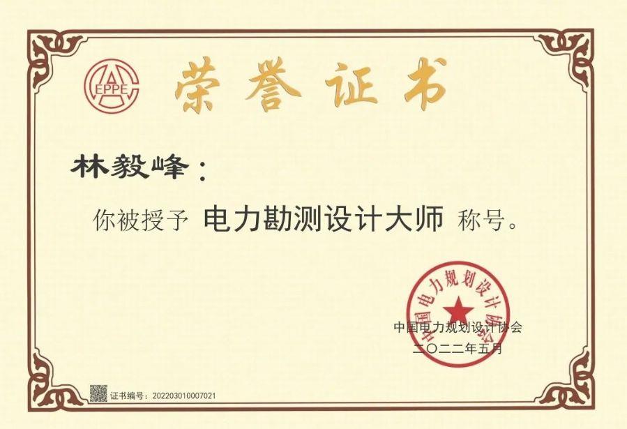本次获评“电力勘测设计大师”,既是对林毅峰同志为我国电力行业,尤其是海上风电勘测设计所做出重要贡献的充分肯定,也是对三峡上海院在我国电力勘测设计行业地位与技术实力的充分认可,将激励三峡上海院全体工程技术人员以大师为榜样,精益求精、勇攀高峰,为公司高质量发展和我国打造以新能源为主体的新型电力系统做出更大的贡献。