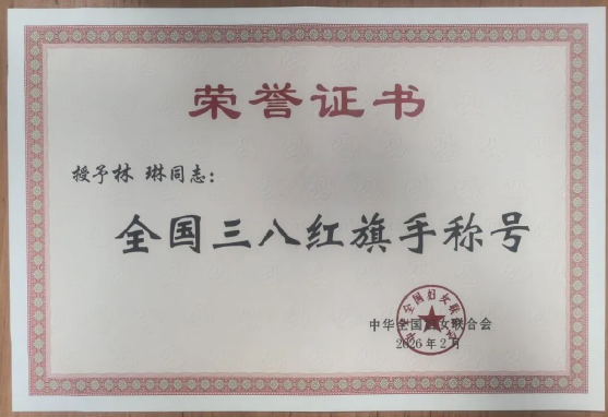 ▲2026年2月,林琳获得由中华全国妇女联合会颁发的“全国三八红旗手”称号。图为荣誉证书和奖章。