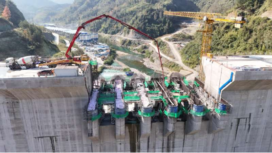 湖南省大兴寨水库工程溢流坝段闸墩混凝土浇筑