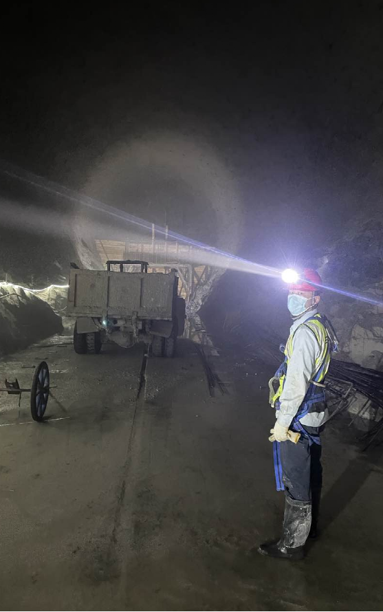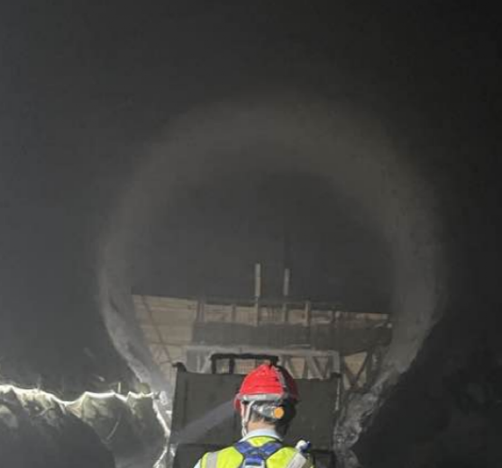 陕西山阳抽水蓄能电站第三方物探检测技术服务项目,洞室弧顶犹如从地平线升起的月亮,物探工程师李贵权正在开展超前地质预报工作,在洞室开挖之前,通过物探的手段,预判前方是否存在地质异常,保障洞室顺利开挖。