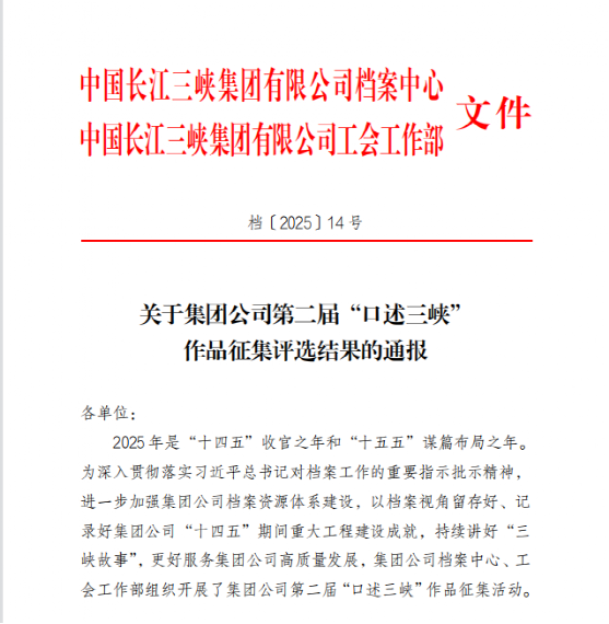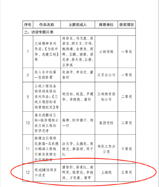 近日,集团公司公布第二届“口述三峡”作品征集评选结果,上海院报送的访谈专题片作品《筑迹|建设项目口述史》从14家单位选送的35部作品中脱颖而出,荣获三等奖。