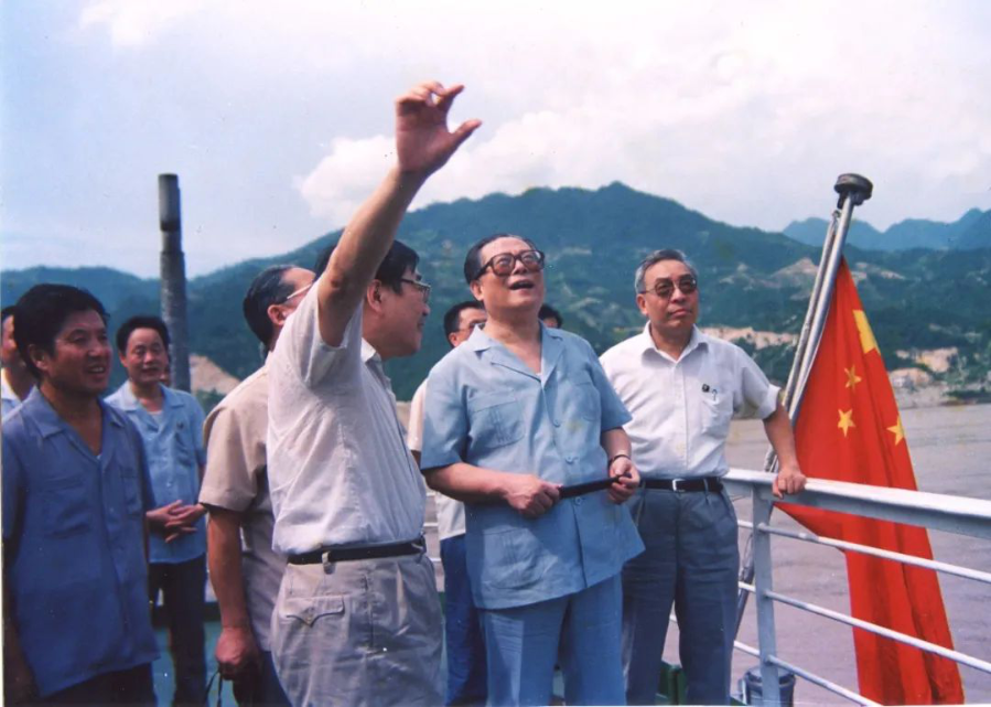 1989年,江泽民同志视察全面竣工的葛洲坝工程。