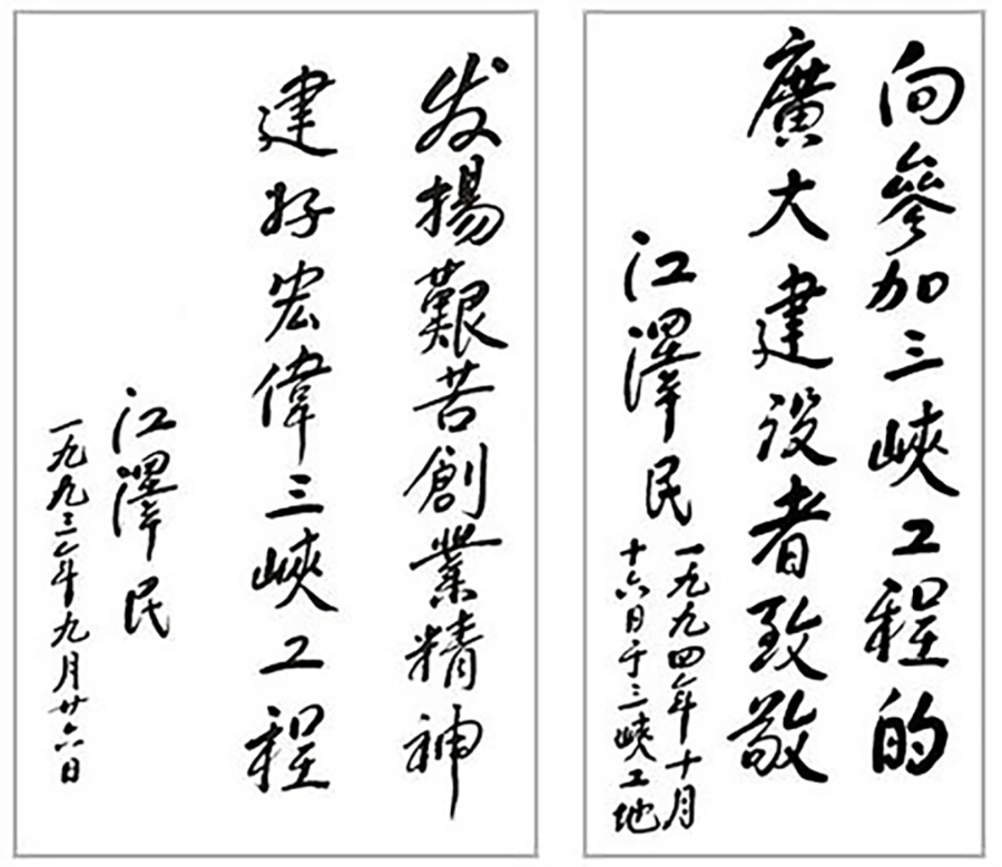 江泽民同志先后于1993年和1994年为三峡工程题词