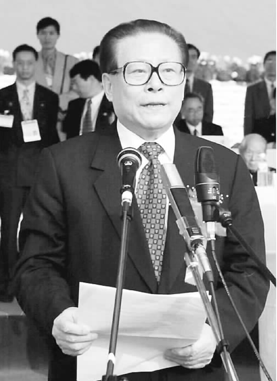 1997年11月8日,江泽民同志在三峡工程大江截流仪式上发表重要讲话。 摄影:王新庆
