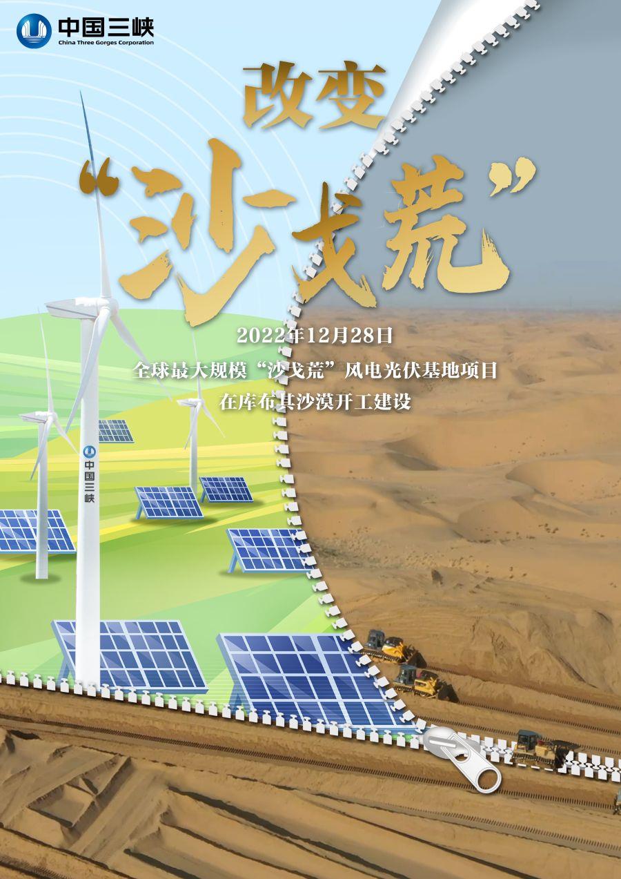 全球最大规模“沙戈荒”风电光伏基地项目在库布其沙漠开工建设