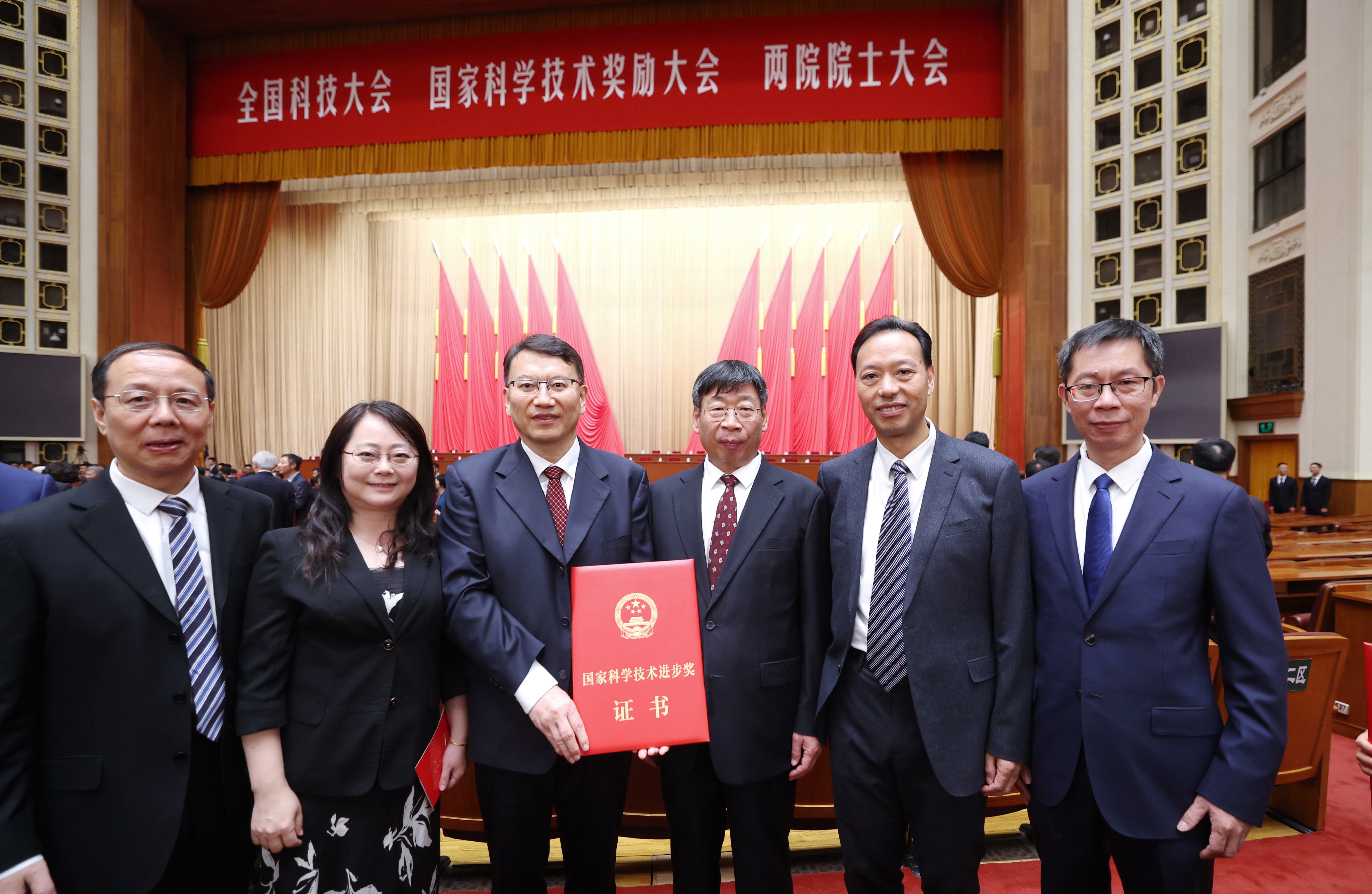 ▲项目获奖代表在人民大会堂领奖后合影(新华社记者 鞠鹏摄)