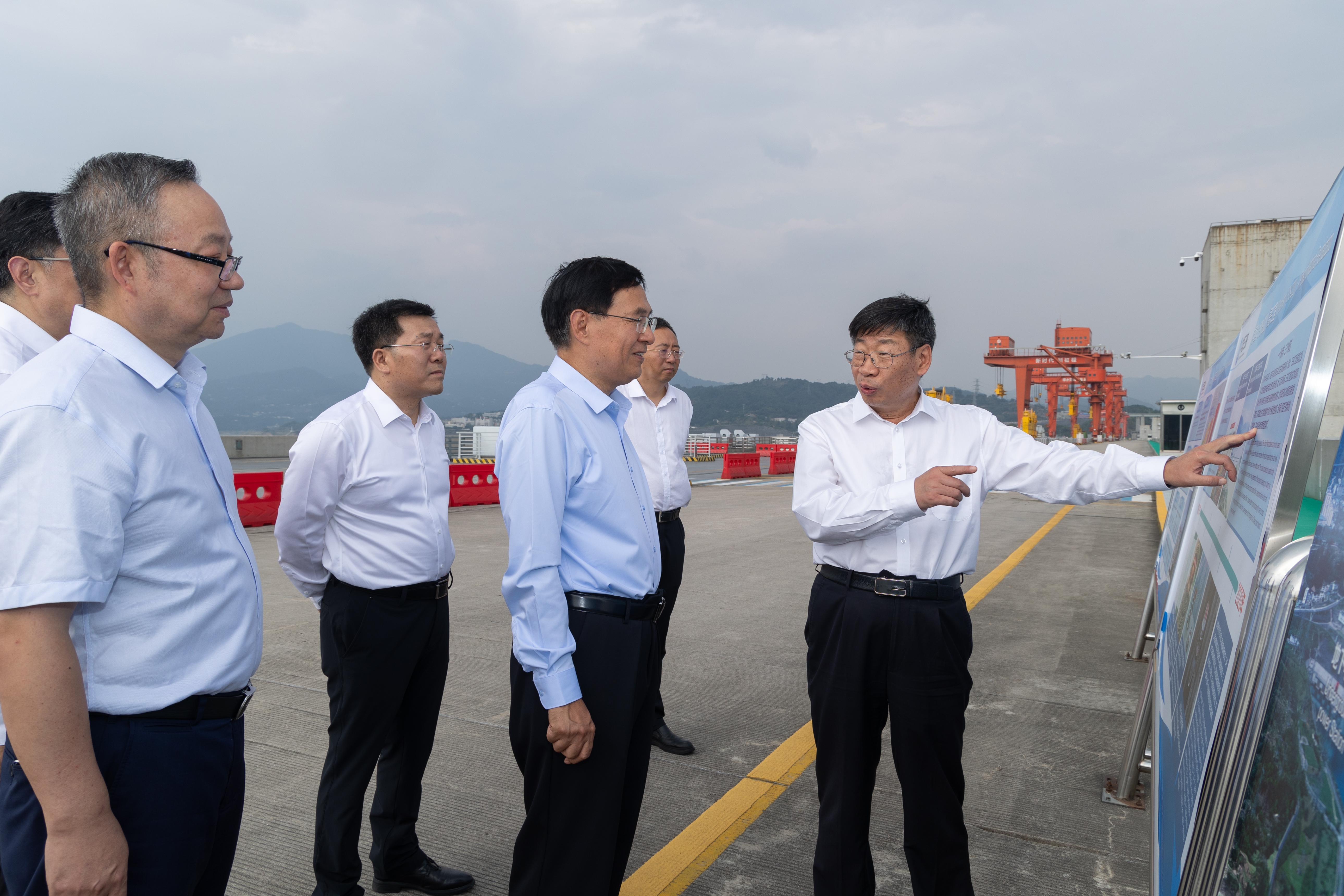 张玉卓一行来到三峡大坝,登上坝顶,深入双线五级船闸、左岸电站厂房、珍稀植物示范园等地调研,与工作人员亲切交流,详细了解三峡大坝及水库运行情况,对三峡集团以跨越式发展守护长江安澜、维护能源安全给予充分肯定。