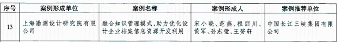 近日,国家档案局公布2021年度全国经济科技档案资源开发利用案例评选结果。由集团公司推荐,三峡上海院报送的经济科技档案工作创新案例——《融合知识管理模式,助力优化设计企业档案信息资源开发利用》被国家档案局评为经济科技档案资源开发利用一类...