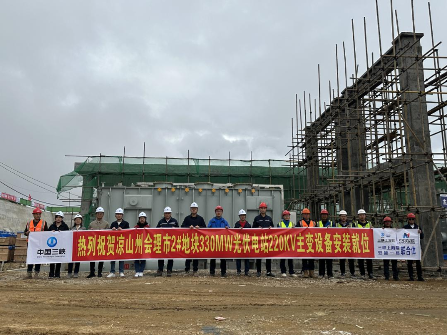 10月25日,由三峡上海院与安能一局组成联合体共同承建的凉山州会理市2#地块330MW光伏电站主体工程(Ⅰ标段)升压站的两台220KV主变设备成功安装就位,为实现项目年内投产发电目标奠定了坚实基础。