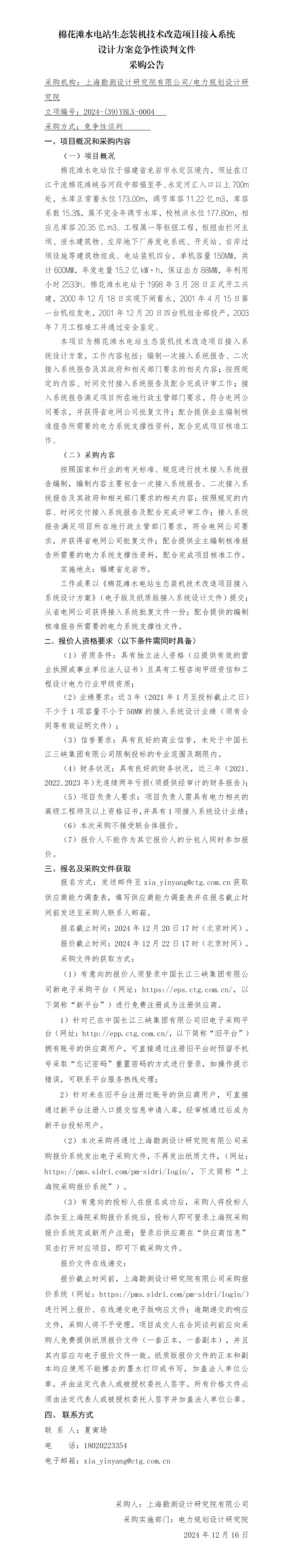 棉花滩水电站生态装机技术改造项目接入系统 设计方案竞争性谈判文件 采购公告