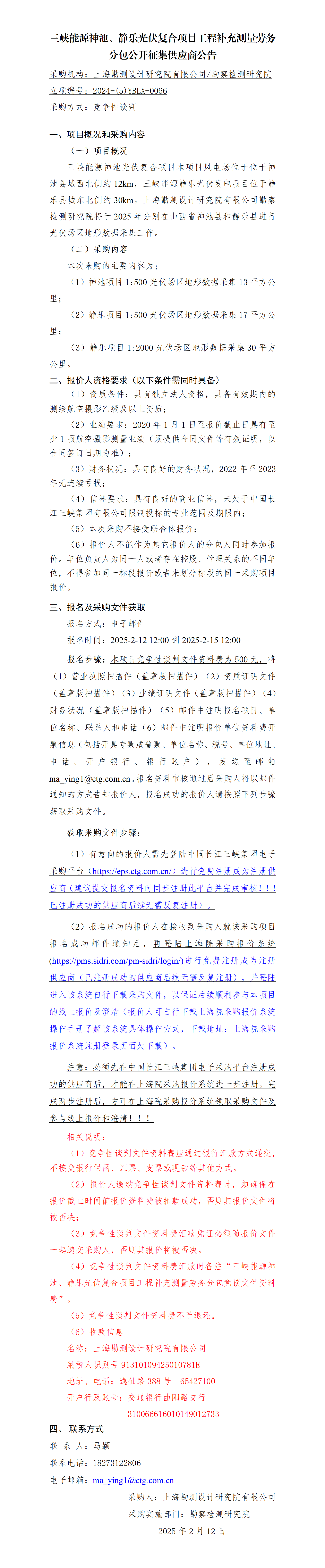 三峡能源神池、静乐光伏复合项目工程补充测量劳务分包公开征集供应商公告