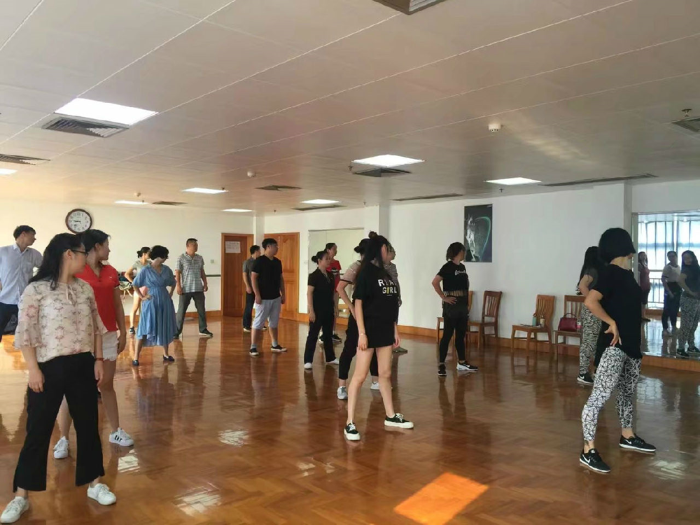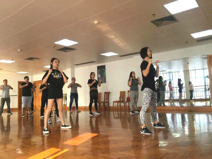 8月16日上午,三峡基地公司首套工间操在活动中心开展正式开展教学,来自各单位、机关部门选派人员参加了学习,回去之后,他们将组织机关人员共同学习。