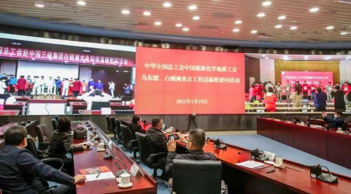 三峡集团工会、中国电建集团工会、中国能建集团工会、乌东德、白鹤滩工程各参建单位相关负责人及劳动模范、优秀建设者、困难职工代表共计100余人参加送温暖活动。