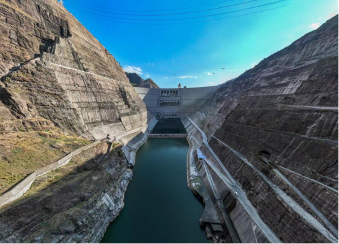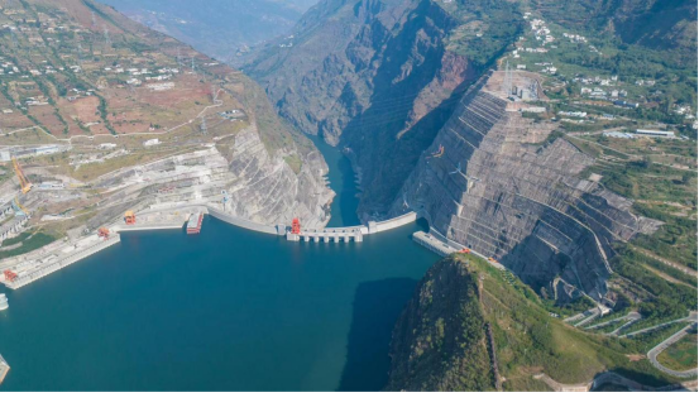 ▲白鹤滩水电站大坝下游