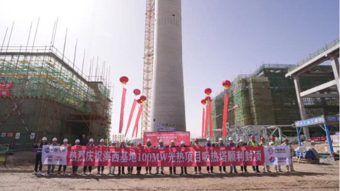 自项目开工以来,建设团队扎根项目现场,以时时放心不下的责任感履行“危大工程”施工中各项管控职责,及时解决制约因素,紧盯“以日保周、以周保月”的建设目标,完成了吸热塔封顶重要施工节点任务。