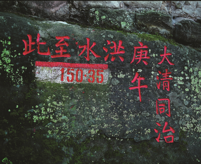 此题刻为云阳县令所刻,后经长江委历史洪水调查时测定并补刻洪水高程“150.35”)