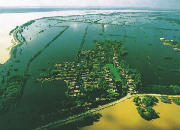 1998年长江发生洪灾时被水淹没的嘉鱼县乡村簰洲湾