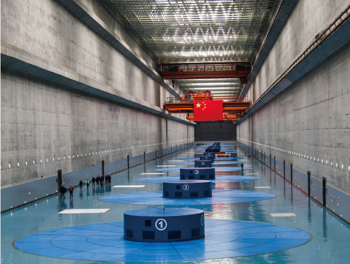 三峡水电站总装机容量为2250万千瓦,是当今世界上装机容量最大的水电站,多年平均年发电量882亿千瓦时。
