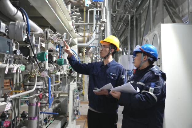 ▲ 在制氢生产车间,工作人员仔细检查设备管路、接口密封性,及时做好设备维护,全力保障复工复产期间绿氢产能稳步爬坡。摄影:王丽曼